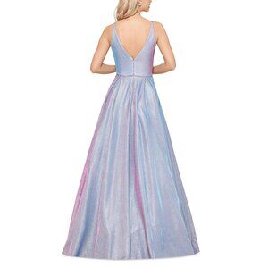 Blondie Nites Juniors' Metallic Plunge-Neck Sleeveless Gown Size 5