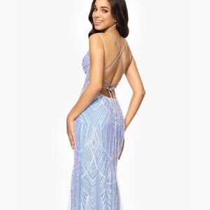 A sequin geometric design lends a flawless, 1920's vive to this stunning gown by Blondie Nites. Dazzle the crowd and party the night away in style.