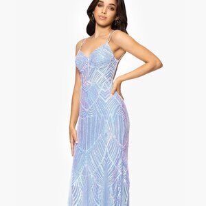 Blondie Nites Juniors' Sequin-Mesh Floor-Sweeping Corset Gown Ice Blue Size 3
