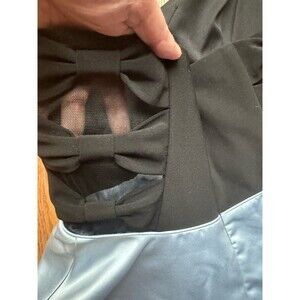 Blondie Nites Party Dress Junior Size 7 A-Line Colorblock Strapless Black Top, Blue Satin Bottom