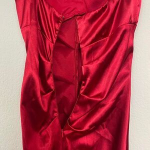 Blondie Nites Red Satin Dress Ruffle Mermaid Formal Gown Maxi Roses Size 5