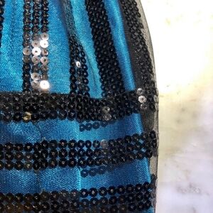 Blondie Nites ✦ Sequin Fit & Flare Dress ✦ Blue Black Bow Prom Mini Sz 0 EUC