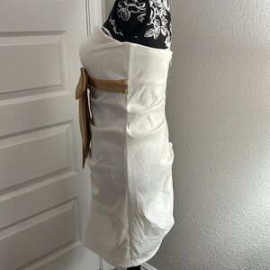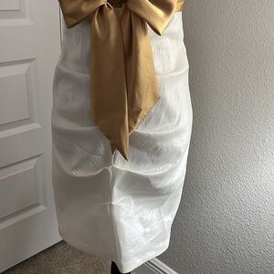 This is a gorgeous, white and gold gown by Stacey Sklar.