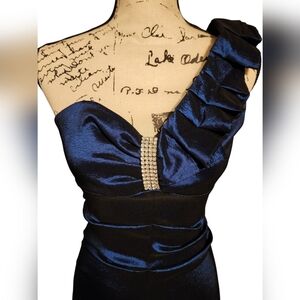 Blondie Nites by Stacy Sklar Blue One Shoulder Cocktail Gown