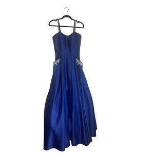 Blondie Nites by Stacy Sklar Women's Prom Gown 7 Strappy Embellished Royal Blue,