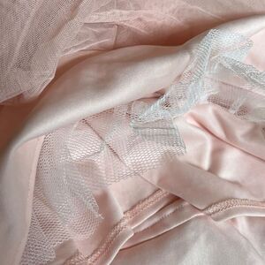 Blondie Nites by Stacy Sklar women’s/juniors special occasion dress. Adorable for Homecoming, Prom, Daddy Daughter Dance, Sweet 16, etc. Black upper with silver embroidered edges and matching sequins. Lightly boned, lightly padded (non removeable). Bottom half is a light pink with double tulle outer layering, a solid soft layer beneath that, and a tulle skirted soft layer beneath that for a total of four layers. Professional spot clean only. US size 3, please verify your measurements below.