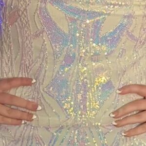 Dazzle in this strapless white keyhole dress by Blondie Nites. Features iridescent detailing for a glamorous touch. New condition! Only worn to try on. NWOT