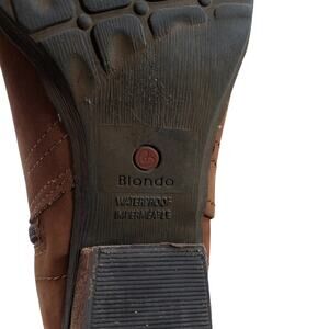Blondo 7.5 Suede Leather Bootie Ankle Boots Women Tan Beige Zip Stacked Heel 2"