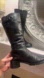 Stylish black leather boots. Cozy fleece lining inside. Some peeling in interior non leather part ( not visible when worn ) and there have been insoles placed as there was wear on footbed . These are stunning practical warm boots . Size 7 wide