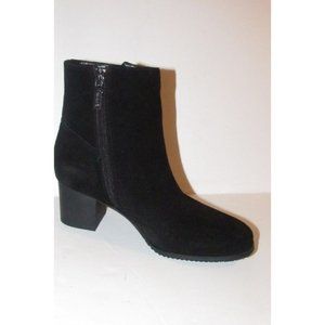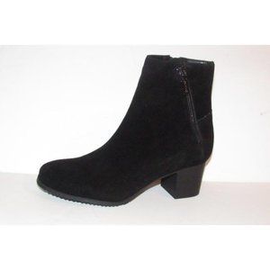 For sale is a pair of water-proof, Blondo, size 8, NIB, black suede, ankle boots with side zips on both sides and gold zipper fobs! These brand new and unworn ankle boots from Blondo are a perfect year round style for you to wear with a summer dress or tights and a skirt! The shoes are so cool! They are made by Blondo. The ankle boots are made with black suede and are brand new and in their box! The design is an ankle height with side zips on both sides and they have a wider, 2.5" heel. N0701
