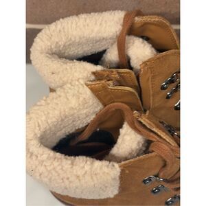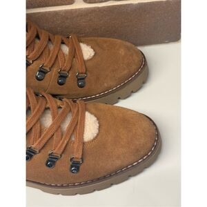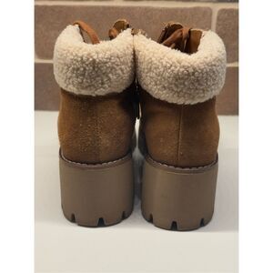 Blondo Boots Waterproof Brown Devin Women Suede 7.5 Shearling Wedge Lace Up Lug
