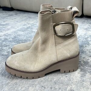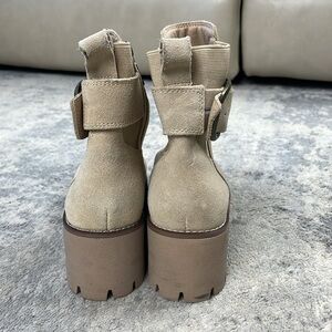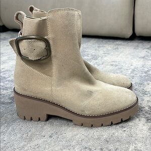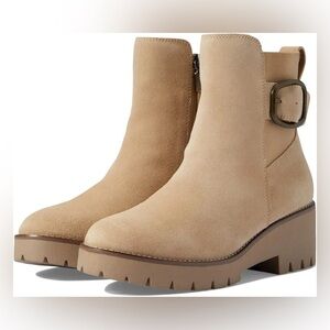 Blondo Dahlia Waterproof Ankle Boot Chunky Heel Buckle Side Sand Suede Sz 6