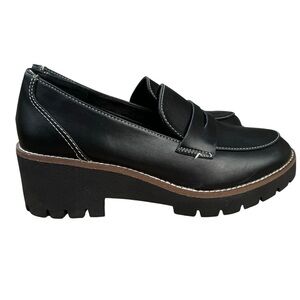 Blondo Daina Black Leather Chunky Lug Platform Waterproof Penny Loafers Size 9.5