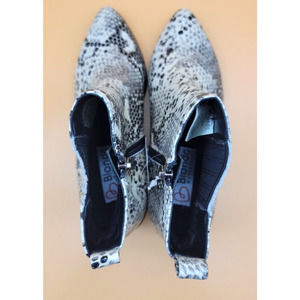 Timeless, practical chic! put on this superb riding bootie to complement your favorite business casual to weekend outfits! a must-have fashion it men for your fall wardrobe! features with an inside zip and an outside covered gore for a better fit. New Without Original Box! Just tried on. These shoes are a beauty!! Snake skin print. A must have!