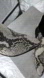 Women's ankle boot or bootie. Black, white, and gray snakeskin embossed. Block chunky low heel and pointed toe. Waterproof. Size 7. Good pre-owned condition.
