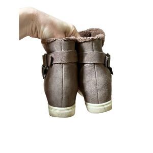 Blondo Geneva Womens 8.5 Ankle Boot Waterproof Taupe Suede Hidden Wedge Faux Fur