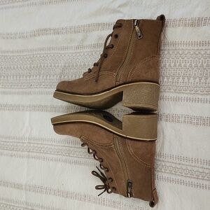 Blondo Genuine Leather Lace Up Ankle Boots Neutral Tan Brown READ DESCRIPTION