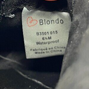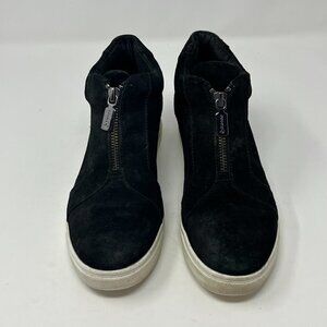 Blondo Glenda wedge sneakers, women's size 6.5. Zipper closures up front. Waterproof suede-like exterior. Black with white soles. Gently worn, in good used condition. Some marks/fading on uppers, some minor discoloration on soles. See pictures.