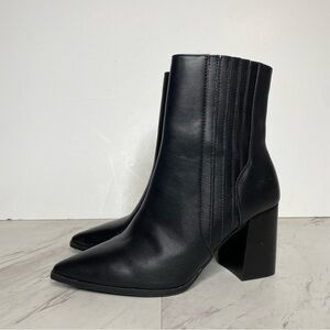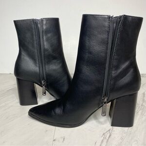 Blondo Indi Black Leather Pointy Toe Heeled Bootie 7 1/2 M