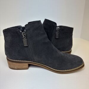 Blondo Linda Waterproof Dark Grey Suede Short Ankle Bootie Dual Side Zips Size 5.5