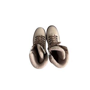 Blondo Natashia Womens Bone Leather Waterproof Faux Shearling Cuff Lace Up Boots Size 9M