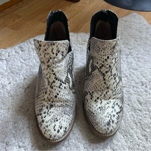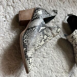 Blondo Neda Ankle Booties Leather White Black Faux Python Waterproof Heels