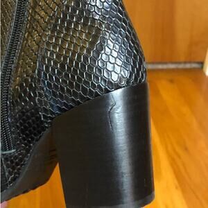 See last photo for slight indention on inside of block heel.