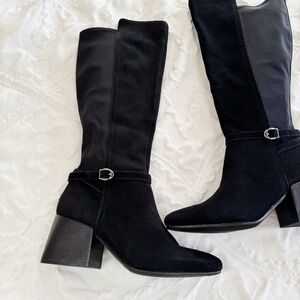 These boots are new and in great condition In the color taupe suede Waterproof tall boot 2.5 Inch heel height approximately Suede upper material Synthetic lining Synthetic sock Rubber sole Easy care: easily wipe off dirt and calcium/salt traces with a damp cloth Retail price $219.00