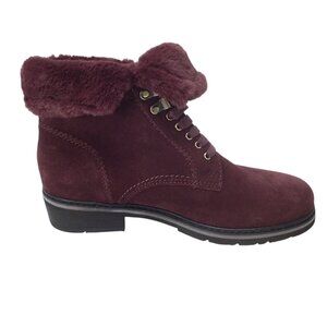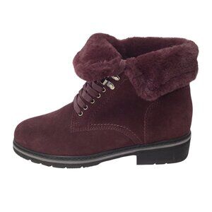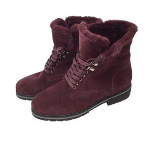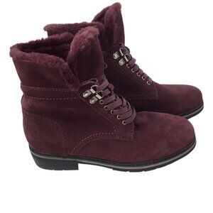 Blondo Vedette Boots Burgundy Suede Size 7.5 Faux Fur Lined Lace Up Waterproof