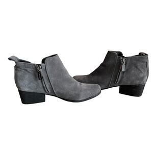 Blondo Waterproof Ankle Boots Booties in Gray Suede, size 8. Good preowned condition with inside zipper and stretch panel.