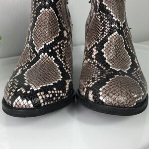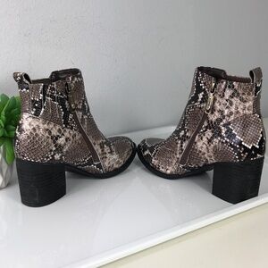 Blondo Waterproof Snakeskin Ankle Bootie Block Heel 7 Black Gray Taupe