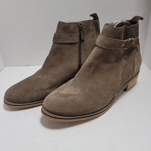Blondo Waterproof Suede Tan Buckle Zip Booties 9.5 EUC