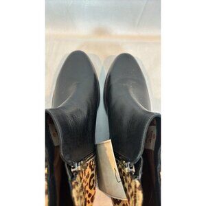 Blondo Women's Cheeta Print Acent Aqua protected Black Leather Booties Size 9