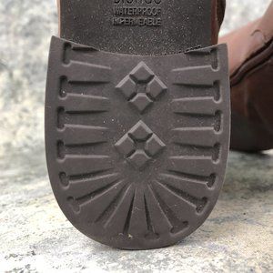Women's Volley brown genuine leather waterproof side zip tall boots, riding style boots. Closed toe, block heel, tall silhouette.