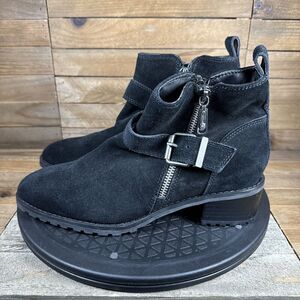 Blondo Womens Sz 7.5 Susan Black Zip & Buckle Waterproof Suede Ankle Bootie