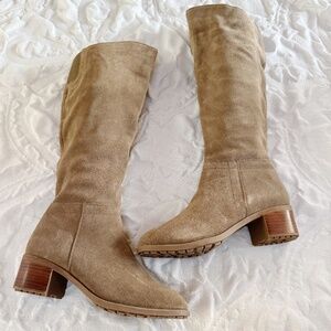 These boots are new and in great condition Blondo Waterproof delivers with a cushioned insole and soft lining that will keep your feet feeling great all day long offer exceptional protection against rain and wet conditions. Block Heel Waterproof: protects against rain, puddles and slush to keep feet dry in wet condition Tan suede upper Has partial side zip closure Retail price $169.00