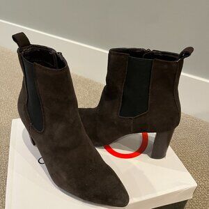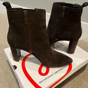 Blondo Women's Waterproof Kamila Boot in Chocolate Brown suede. 3" heel (size 8.5), 4" shaft