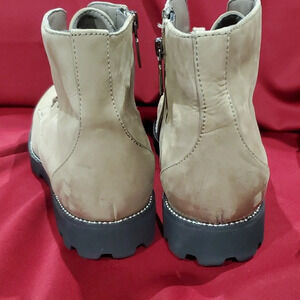waterproof excellent condition small discoloration on heel shown in photos no other issues like new tan lace up or side zip ankle boots with lug sole and traction by blondo