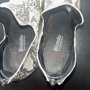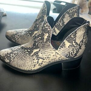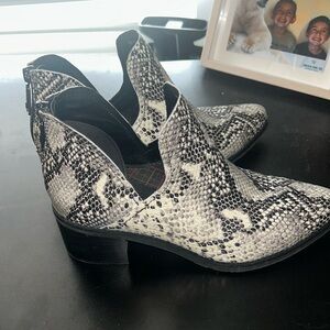 Blondo brand. Size 8.5. Snake print booties. Weather proof. Like new condition. Originally $195