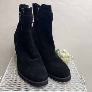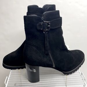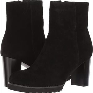 Blondo Lug Sole Waterproof Suede Heeled Ankle Zip Heeled Bootie Black 10 NWT