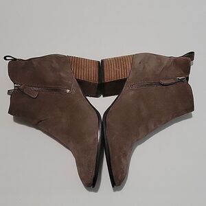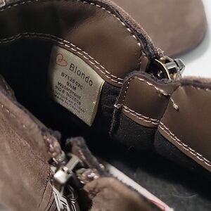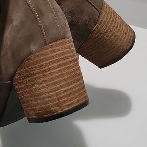 Blondo suede stacked block heel waterproof boots in dark taupe.