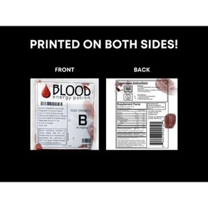 Blood Energy Drink Flask, I.V. Bag Drink Pouch, Blood Bag Drink Cups + Labels, C