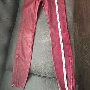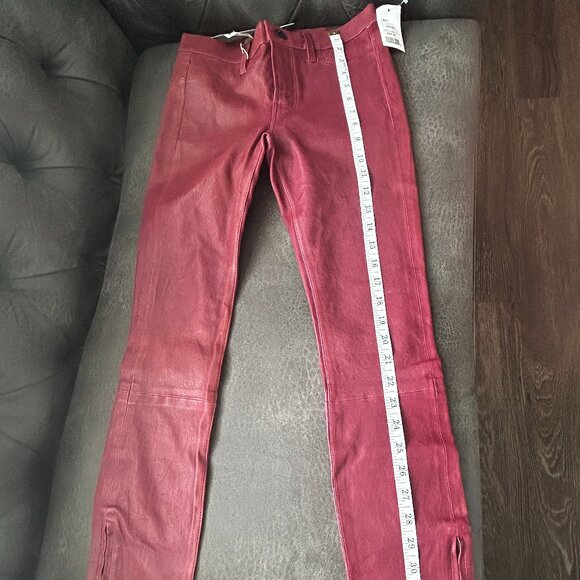 Brand New J Brand Red Leather Straight Leg Pants. Zippers on the bottom of the pants. Pants made of lamb's Leather. Feels soft and looks great on the skin.