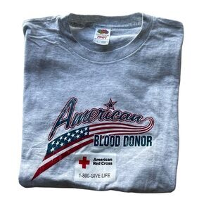 Blood donation Flag T-Shirt Gray Size XL Vintage blood donor patriotic