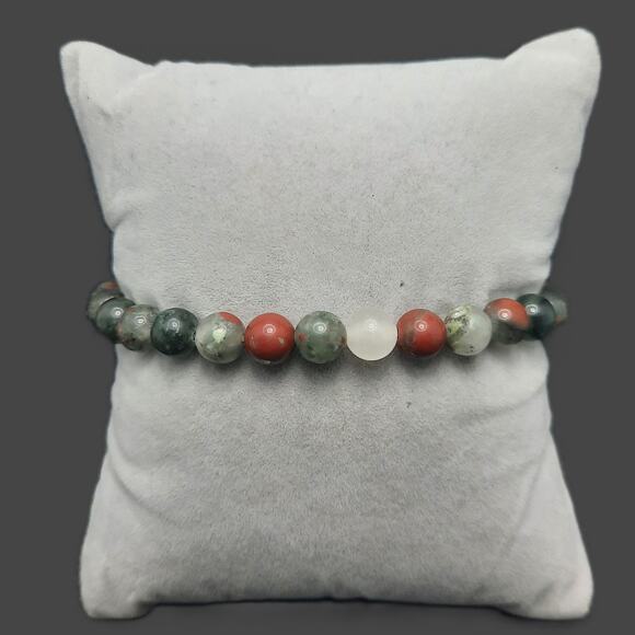 This beautiful artisan-made bracelet features genuine Bloodstone gemstones. Each bead measures 6mm and is carefully strung on a durable stretch cord for a comfortable and flexible fit for most wrist sizes.