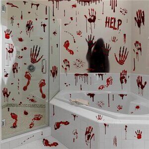 Instantly create a chilling haunted house scene with this 12-pack of ultra-realistic, bloody handprint and footprint stickers. Made from self-adhesive PVC, they apply easily to windows and walls and remove cleanly without residue. Includes a plastic scraper for perfect placement.