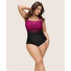 Bloom Chic Contrast Twist Front Skinny One Piece Swimsuit woman’s plus size 22 2