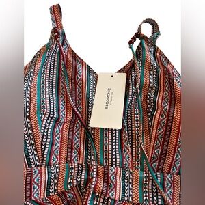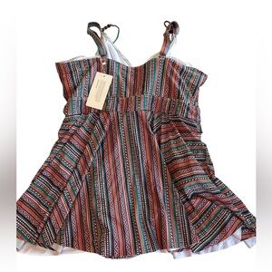 Bloom Chic Plus Size Bandana Striped Print Adjustable Straps Swim Dress 22-24W.