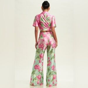Embrace elegance with this stunning floral pant set.Featuring a vibrant pink and green design, it's perfect for any occasion. Stand out with style and comfort.