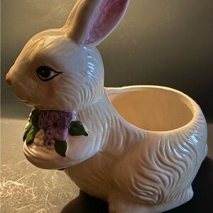 Bloom Rite 2000 Ceramic Rabbit Planter With Flowers, good condition, 7” x 5” x 8”